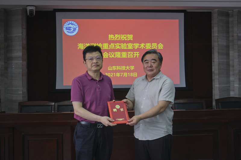 会上,姚庆国为学术委员会委员颁发聘书,与会领导共同为海洋测绘重点实验室揭牌。