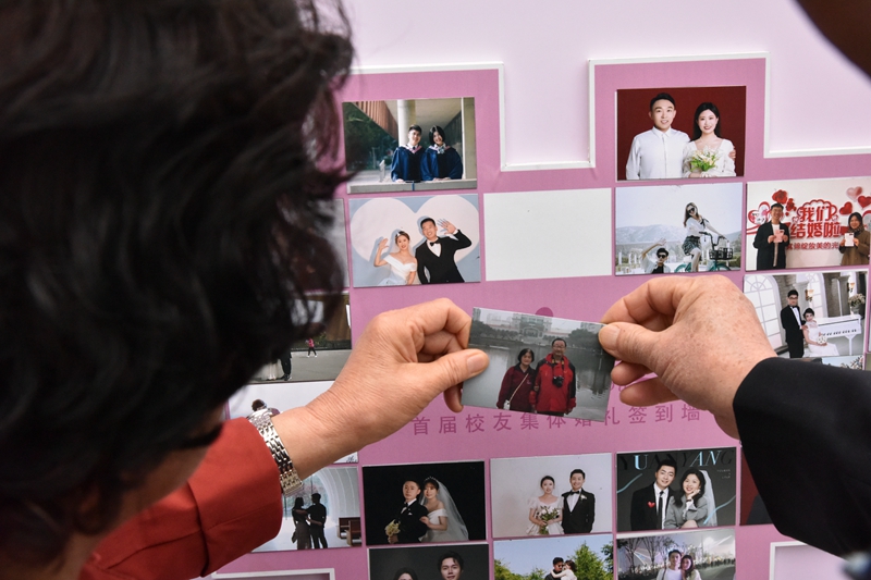 这25对校友夫妇,既有金婚夫妇,也有新婚伴侣,他们都有一个共同的身份——在校园里相知、相恋的“校友”。“去年10月份,我们得知母校要举办集体婚礼的消息,便赶紧报了名,因为我们相识在学校,在学校有太多的回忆。”新婚夫妇刘庆晓、刘茹表示,为了参加这场特别的婚礼,他们从1800公里以外的深圳赶过来。