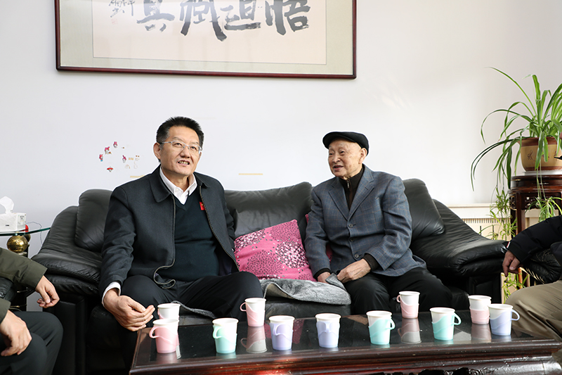 张新文与宋振骐院士亲切交流。张新文说,看到宋院士精神矍铄、步履稳健,非常高兴,感谢宋院士为中国和山东能源事业做出的巨大贡献。张新文表示,此行代表省委、省政府和省政协向宋院士表示新春的祝福和问候。在关切地询问宋院士的身体和工作情况,共同回忆宋院士和科大专家在煤炭生产一线的奋斗故事后,张新文希望宋院士保重身体,继续发挥院士优势,为能源事业与地方及区域经济社会发展再做贡献。