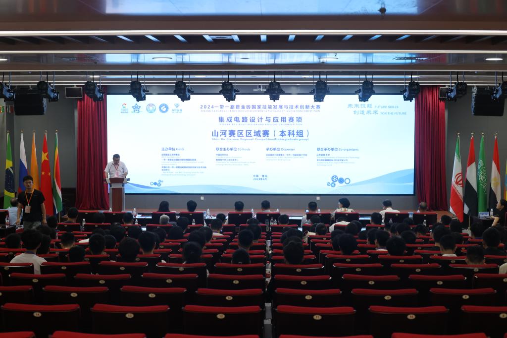 6月16日,2024年一带一路暨金砖国家技能发展与技术创新大赛集成电路设计应用赛项山河赛区区域赛(本科组)在星空手机官方网站举办。来自19所高校的71支队伍齐聚一堂,以赛促学,以赛促就,助力集成电路产业高质量发展。副校长诸葛福民出席并致开幕辞。