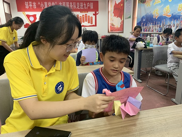 志愿者教孩子们做手工