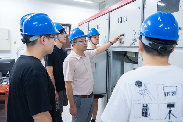 被学生们认为“艰难晦涩”的电力系统分析,在于永进的课堂上却成了最受欢迎的沉浸式科技探险。作为电气与自动化工程学院的本科生学业导师,他将专业课程直接“开源”,他在“继电保护测试”“新能源发电”等实践课堂中不但厚植家国情怀,更将前沿科研实践融入课堂教学,一对一指导学生,助力学生在本科阶段提前接触科研攻关项目,积极践行服务国家战略需求的育人使命。