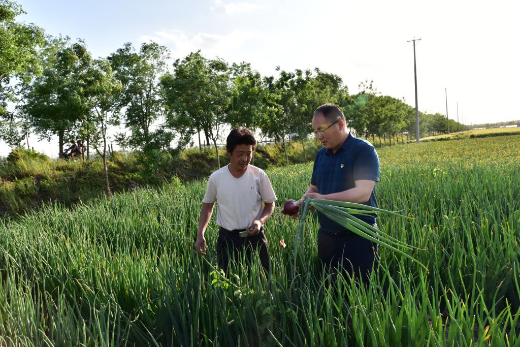 李恒忠(右一)查看洋葱收获情况
