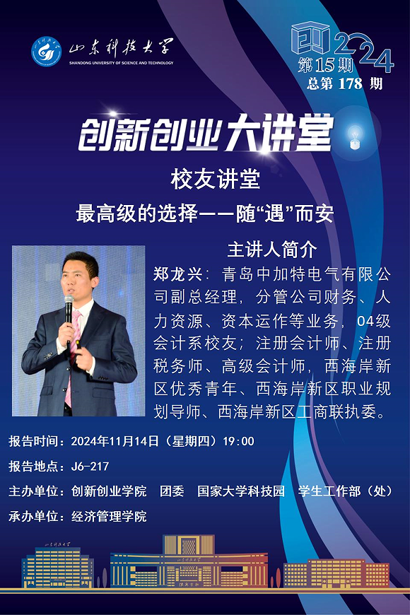 创新创业大讲堂2024年第15期:最高级的选择——随“遇”而安