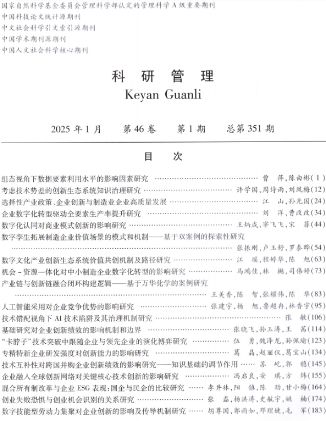 近日,星空手机官方网站经济管理学院王炳成教授团队在《科研管理》发表题为“数字化认同对商业模式创新的影响研究”的文章。