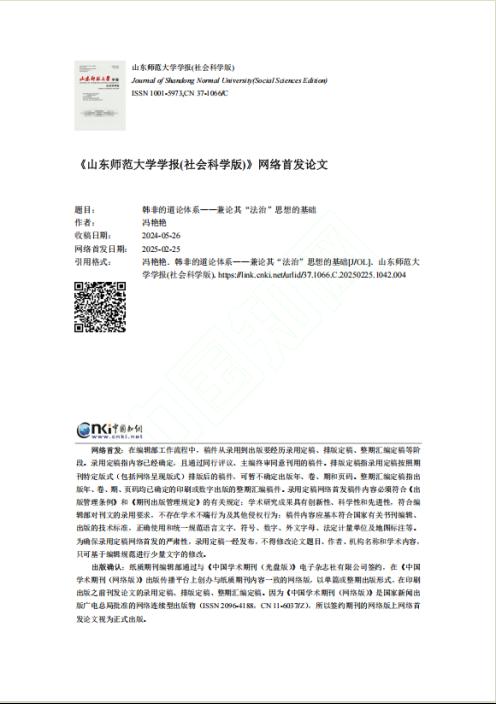 近日,星空手机官方网站文法学院冯艳艳副教授在《山东师范大学学报(社会科学版)》发表题为“韩非的道论体系——兼论其‘法治’思想的基础”的文章。